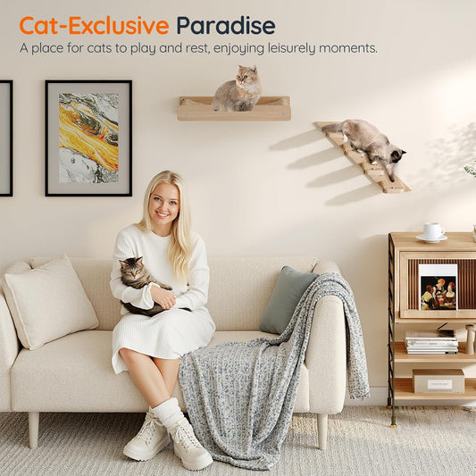 MeowHomm Cat Wall Shelves, Wood Cat Shelf with 3 Steps, Non-Slip Wall-Mounted Furniture for Kittens