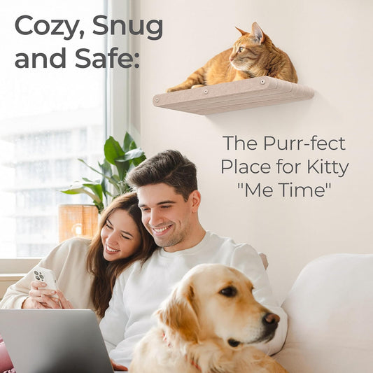 Wall Mounted Cat Perch Long Shelf by Pryde Pets - Floating Hammock Bed, 100% Sustainable PET Felt Feline Enrichment Climber Furniture for Indoor Cats, Modern Climbing Gym Jungle Design (Oatmeal)