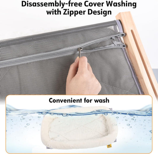 AMOSIJOY Cat Sill Window Perch Sturdy Hammock Seat with Cushion Bed Cover, Wood & Metal Frame for Large Cats, Easy to Adjust Windowsill, Bedside, Drawer and Cabinet (L)