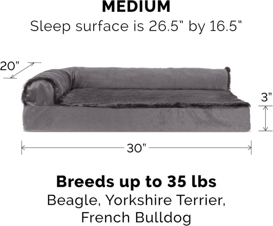 FurHaven Supportive Cooling Memory Foam L Chaise Dog Bed with Washable & Removable Cover - Plush & Almond Print - Gray Almonds, Dogs Up to 35 lbs - Medium