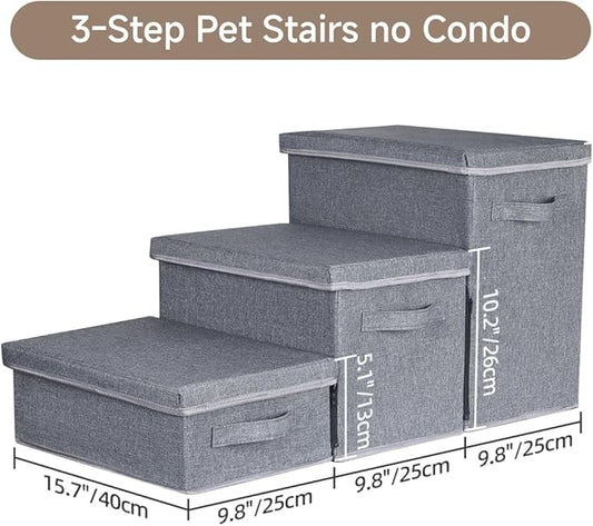 Pet Stairs with Storage, Pet Step for Small Dogs and Cats, 3-Step Folding Pet Steps with Zip, Cat Stairs Dog Steps for Bed, Couch and Car Ramp (Gray, 3 Steps no Condo)