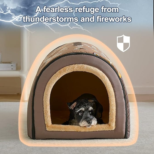 Jiupety Indoor Dog House, 2-in-1 Portable Foldable House Bed with Cover, Pet Tent & Cave Bed for Medium Dogs, XL(29"×21"×20"), Up to 44 Lb, Brown