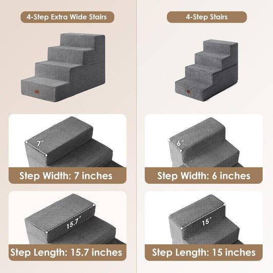EHEYCIGA Dog Stairs for Bed 20" H, 4-Step Extra Wide Dog Steps for High Bed, Pet Steps for Small Dogs and Cats, Non-Slip Balanced Pet Ramp Indoor, Grey