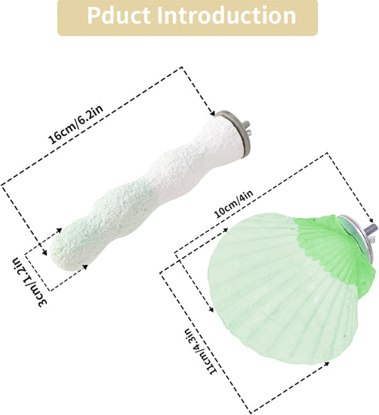 Bird Perches for Cage, Abrasive Surface High Calcium Mineral Parrot Perch Stand - Bird Nail File for Claw & Beak Health, Colorful Ceramic Bird Cage Accessories (Green, Shell)