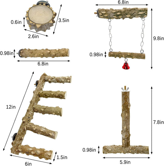 BNOSDM Natural Wood Bird Ladder Perch 6Pcs Parrot Stand Branches Climbing Chewing Stick Parakeet Swing Toys Cage Accessories Paw Grinding Fork Sets for Lovebirds Cockatiels Conure Budgies
