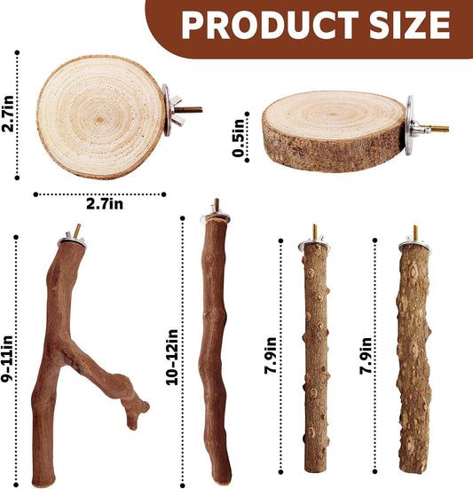 5PCS Bird Perch Stand Natural Wooden Parrot Stand Branch,3 Grape Wood Perch,2 Platform,Paw Grinding Fork Parakeet Chewing Stick Exercise Training Branches for Cockatiels,Small Birds