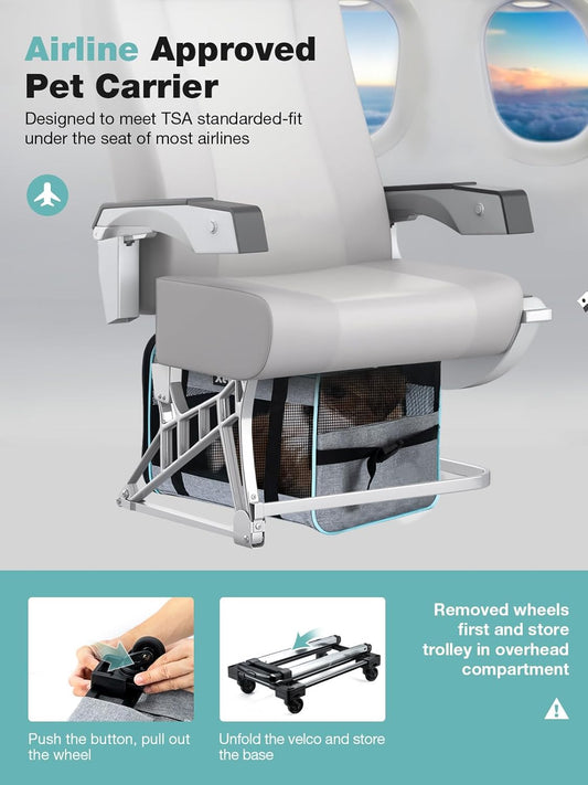 Airline Compliant Pet Carrier - Rolling Portable Travel Carry Crate for Small Dog Puppy or Cat - Soft Removable Wheeled Design with Mesh Window Sides - Airplane and TSA Compliant- by Katziela