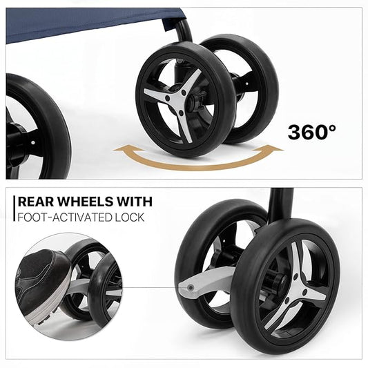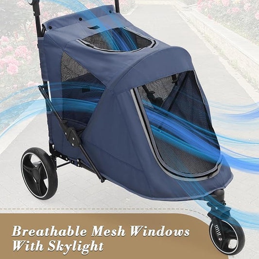 Large Dog Travel Stroller with 4 Heavy Duty Wheels Pet Stroller with Adjustable Handle - Double Doggie Capacity Jogger Wagon with Back Front Door for Small Medium Large Dogs (Navy)