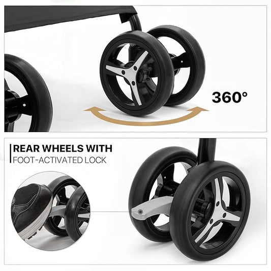 MoNiBloom 4 Wheels Pet Stroller, Easy-Fold Puppy Cage Jogger Stroller with Sun Cover, Pad and Rear Storage Bag, Breathable and Visible Mesh for Small/Medium Pets up to 22 lbs, Black