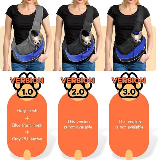 YUDODO Pet Sling Carrier for Small Dogs & Cats – Hands-Free Puppy Carrier with Safety Hook, Large Zipper Pocket, Soft Breathable Mesh, Adjustable Strap & Reflective Strip (Blue 1.0 S)