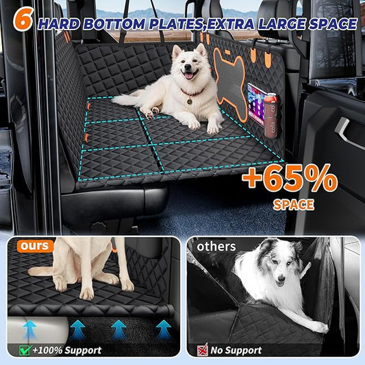 Dog Car Seat Cover for Back Seat, Larger Dog Car Bed Cover with Hard Bottom, Backseat Extender Hammock for Full SizeTruck/SUV 8 Panels - Black