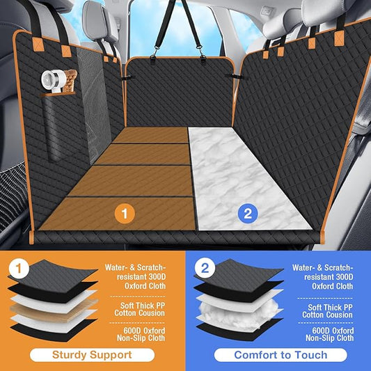 Dog Car Seat Cover for Back Seat, Dog Car Bed Cover with Strong Hard Bottom, Car Back Seat Extender Hammock for Car SUV Truck,4 Panels Black Large Size