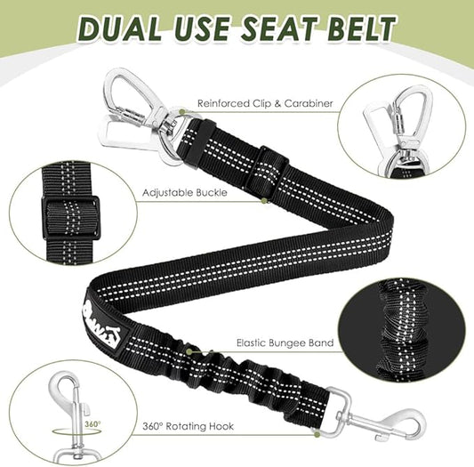 SlowTon Dog Seat Belt Harness for Car, Dog Car Harness Adjustable Mesh Breathable & Dog Seatbelt Safety Tether with Elastic Bungee for Small Medium Large Pets(Black, Single Clip, L)