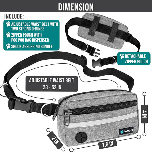 PetAmi Hands Free Dog Leash, Dog Running Leash Belt for Walking Jogging, Dog Waist Zipper Pouch Fanny Pack with Poop Bag Dispenser, Dual Padded Handle Bungee Leash for Small Medium Large Dogs, Double