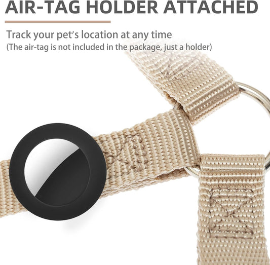 PUPTECK No Pull Dog Harness Soft Adjustable Basic Nylon Step in Puppy Vest Outdoor Walking with ID Tag and A-ir Tag Case, Cream, M