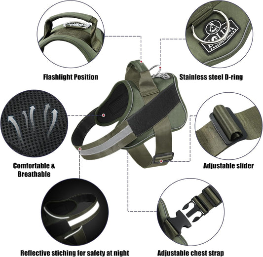 Bolux Dog Harness, No-Pull Reflective Dog Vest, Breathable Adjustable Pet Harness with Handle for Outdoor Walking - No More Pulling, Tugging or Choking (Dark Green, M)