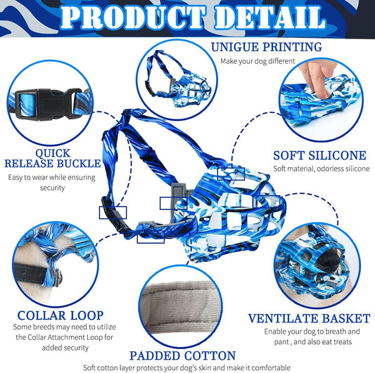 BARKLESS Dog Muzzle, Soft Basket Silicone Muzzle for Dogs to Prevent Biting and Chewing, Breathable Cage Mouth Cover for Training, Allows Drinking and Panting, Used with Collar