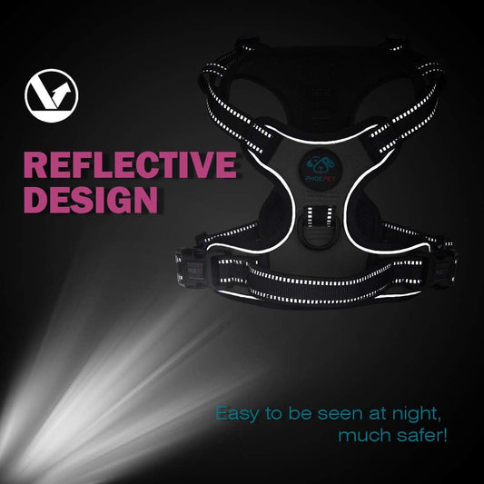 PHOEPET No Pull Dog Harness Medium Reflective Front Clip Puppy Vest with Handle,Adjustable 2 Metal Leash Attachment Hooks(M, Black)