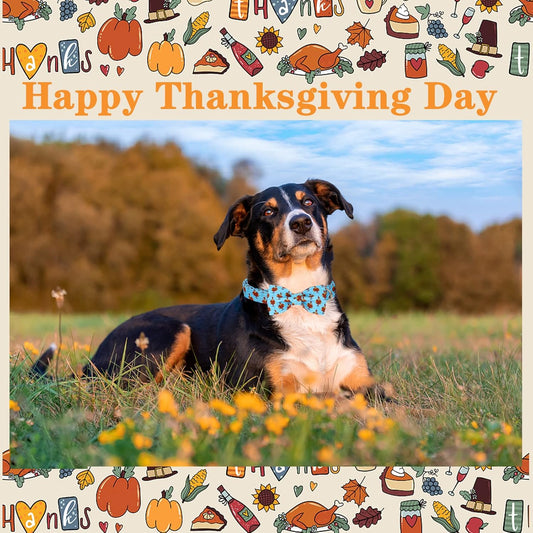 Lionet Paws Thanksgiving Day Dog Collar with Bowtie, Dog Bowtie Collar with Metal Buckle for Dogs and Cats, Adjustable Comfortable Turkey Dog Collar Girl Boy Gift,XXS, Neck 7-11 in