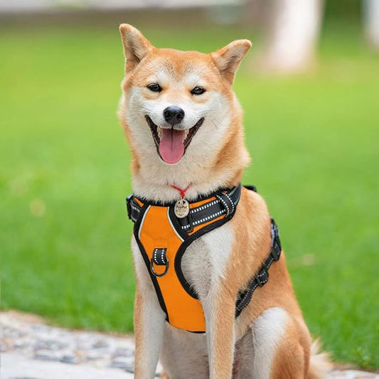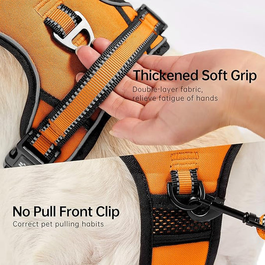 PoyPet No Pull Dog Harness, Reflective Comfortable Vest Harness with Front & Back 2 Leash Attachments and Easy Control Handle Adjustable Soft Padded Pet Vest for Small to Large Dogs (Orange,S)