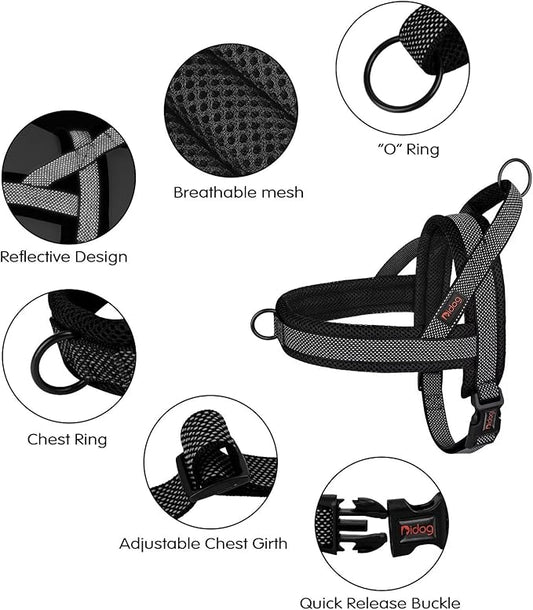 Didog No Pull Dog Harness with Breathable Mesh Padded, Full Reflective & Quick Fit Adjustable Vest Harness, Easy for Training Walking for Small & Medium and Large Dogs (Black, M:Chest 21-26")