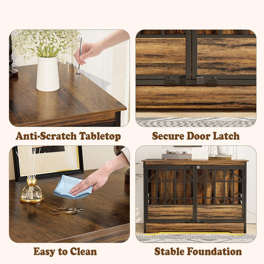 Rustic Brown Heavy Duty Furniture Dog Crate, Wood and Metal Kennel Cage, Pet House End Table with Drawer and Pull-Out Design, Dog Home for Indoor use, Large Size