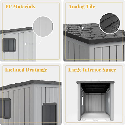 DRATO Dog House for Both Indoor and Outdoor with Weatherproof Roof Removable Floors for Medium to Large Dogs Interior Space (Gray, Large (42.87 * 32.95 * 31.61''))