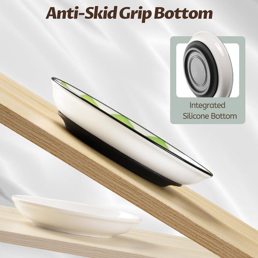Ceramic Cat Food Bowls - 8 Pack Shallow Plates for Wet Food, Whisker-Friendly Feeding Dish with Non-Slip Silicone Base, Microwave & Dishwasher Safe for Indoor Cats & Kittens
