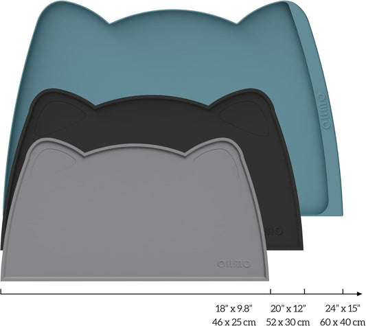 OHMO - Cat Food Mat, Silicone Pet Feeding Mat for Floor Non-Skid Waterproof Dog Water Bowl Tray, Easy to Clean Pet Placemat (Teal, 18 * 9.8'')
