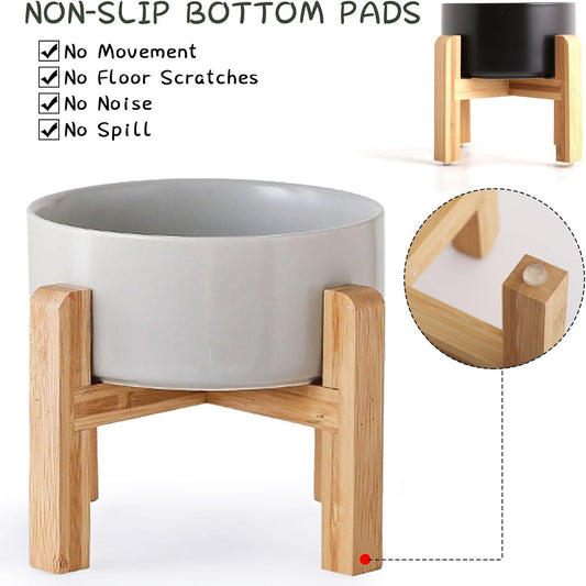 Petygooing 28 OZ Grey Elevated/Raised Ceramic Dog Bowl for Small and Medium Breeds, Dog Food Water Dish with Stand,Pet Feeding Bowl with Anti Slip Rubber for Cats Small and Medium Dogs (3.6 Cups)