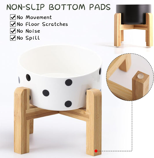 Petygooing Elevated/Raised Ceramic Dog Bowl for Small Breeds, Dog Food Water Dish with Stand,Pet Feeding Bowl with Anti Slip Rubber for Cats and Small Dogs Puppy 13.5 OZ (5.1In / 1.7 Cups) Black Dot