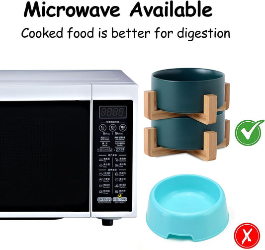 Petygooing Ceramic Dog Cat Bowl Set with Stand,Medium Dog Bowls,Pet Food and Water Dish, Anti -Slip Set of 2 Cat Bowls-Pet Food Bowl- Pet Dish Small Medium Size Pet (28 OZ /3.6 Cups) Green