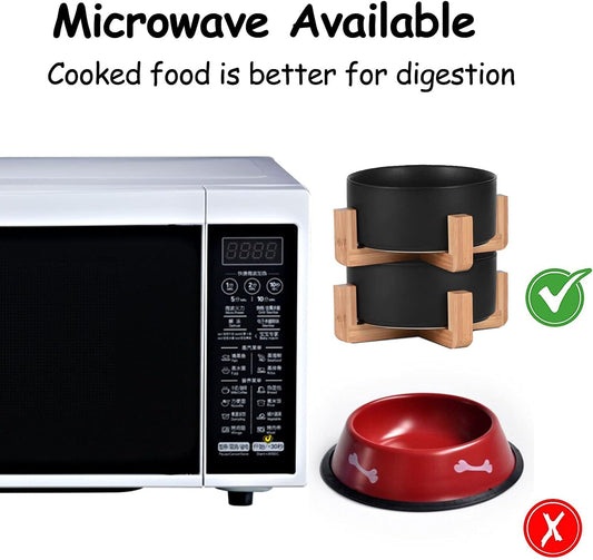 Petygooing Ceramic Black Cat Dog Bowl Set with Stand,Pet Food and Water Dish,Medium Pet Bowls Anti-Slip Set of 2 Cat Bowls-Pet Food Dishes- Small Medium Size Dog (28 OZ /3.6 Cups)