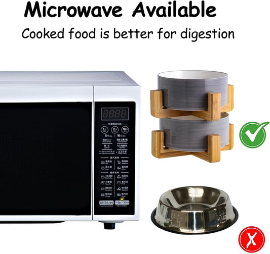 SPUNKYJUNKY Elevated Dog Bowls Ceramic, 7.3'' Dogs Food Water Bowls Raised with Non-Slip Bamboo Stand for Medium to Large Sized Breed Microwave Dishwasher Safe - 42 OZ,Grey
