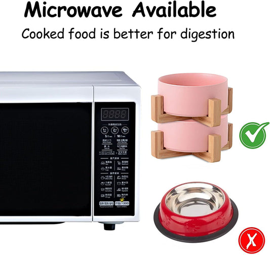 Petygooing Dog Cat Bowl Ceramic Pink Pet Dish with Stand for Food and Water, Modern Cute Matte Glaze Weighted Pet Bowls Set for Cats & Small Size Dogs 13.5 OZ (5.1In / 1.7 Cups) Pink