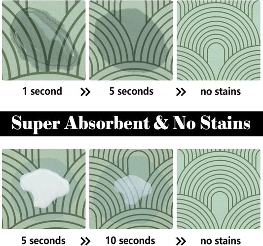 Pet Feeding Mat, 16"x 24" Absorbent Dog Food Mat, Checkered Cat Bowl Mats, Easy to Clean Pet Placemats, Quick Dry Dog Water Dispenser Mats for Messy Drinkers, Green & White