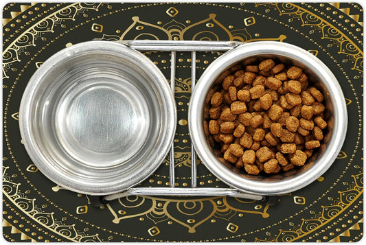 KPWACD Pet Placemat for Dog and Cat, Anti-Slip Waterproof Dogs Feeding Bowl Mat Prevent Food and Water Overflow, Silicone Puppy Dish Mats Suitable for Small Medium Big Pets, Black, 24" * 16"