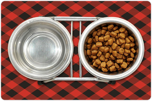 Lunarable Buffalo Plaid Pet Mat for Food and Water, Grid Style Illustration with Horizontal Lines Pattern Diamond, Non-Slip Rubber Mat for Dogs and Cats, 18" X 12", Orange Charcoal
