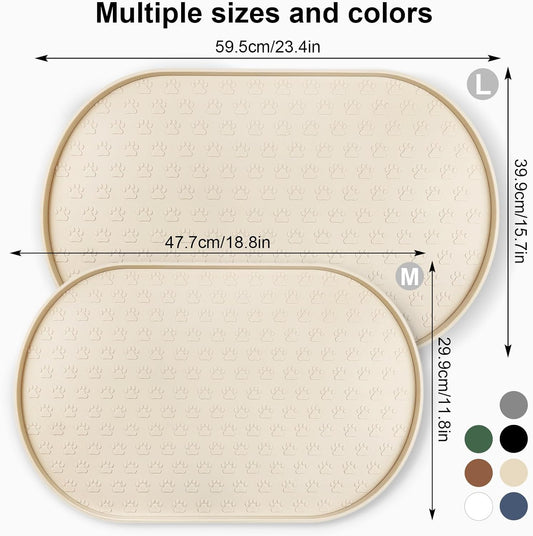 KPWACD Pet Feeding Mat for Dogs and Cats, Silicone Dog Placemat Non-Slip Waterproof Bowl Mats Prevent Food and Water Overflow, High-Lips Puppy Dish Tray Mat Suitable for Large Medium Small Pets, Beige