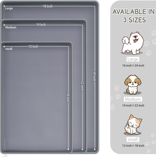 DownyPaws Dog Food Mats for Floors Waterproof, BPA Free Silcone Dog Bowl Mat, Non-Slip Pet Feeding Mat with High Raised Edge, Cat Placemat for Messy Drinkers, 24"×17", Light Gray