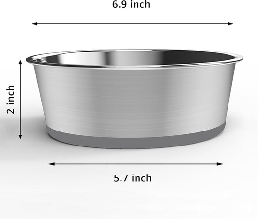 YINGFAN Stainless Steel Dog Bowls, 2 Pack Metal Dog Bowls with Non-Slip Rubber Base, Durable Food and Water Bowl for Small, Medium Dogs, Holds 3 Cups, BPA-Free, Dishwasher Safe (Gray)