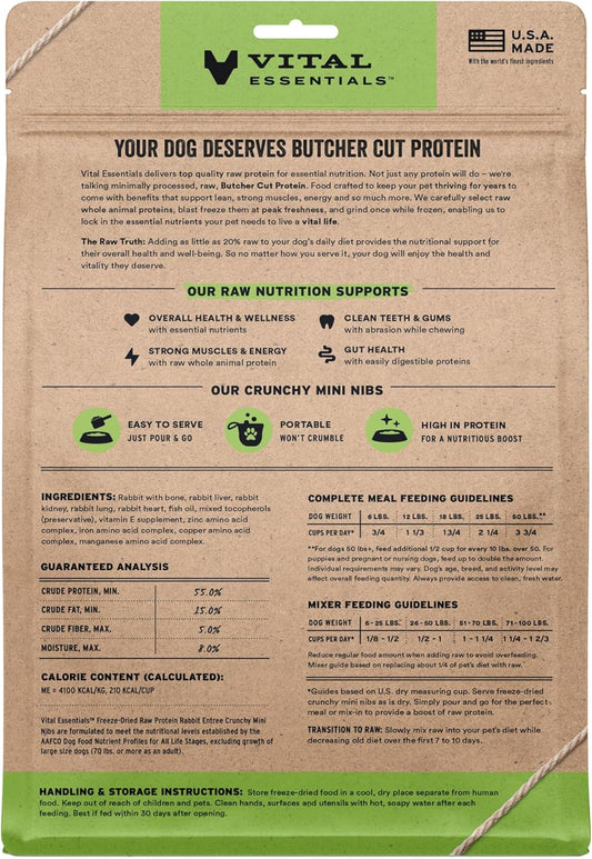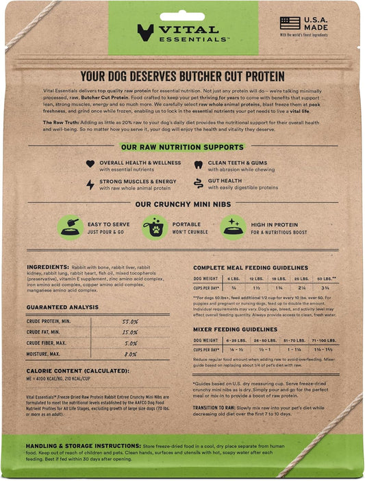 Vital Essentials Freeze-Dried Raw Rabbit Meal or Mixer Dog Food Crunchy Mini Nibs, 25 oz