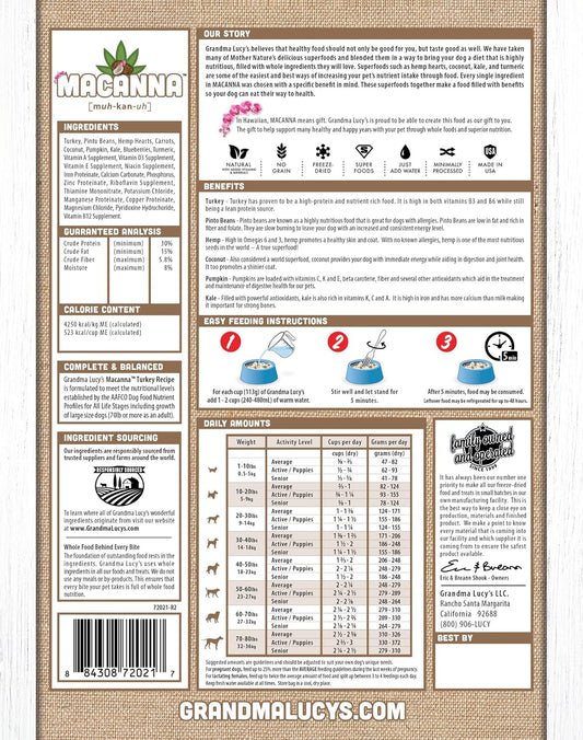 Macanna Grandma Lucy's Grain-Free Turkey Freeze-Dried Dog Food 3 Lbs., Brown