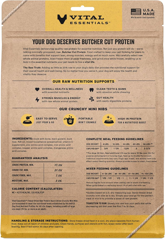 Vital Essentials Freeze-Dried Raw Duck Meal or Mixer Dog Food Crunchy Mini Nibs, 25 oz