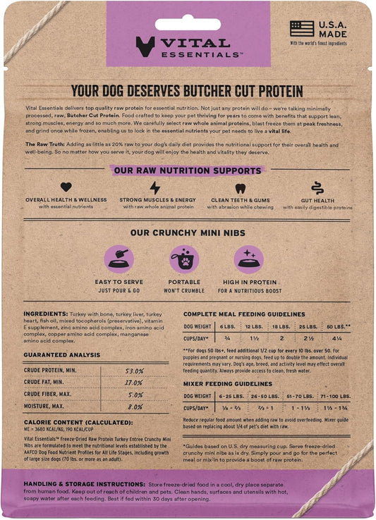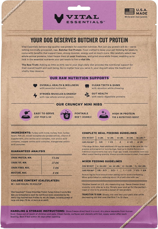 Vital Essentials Freeze-Dried Raw Turkey Meal or Mixer Dog Food Crunchy Mini Nibs, 14 oz