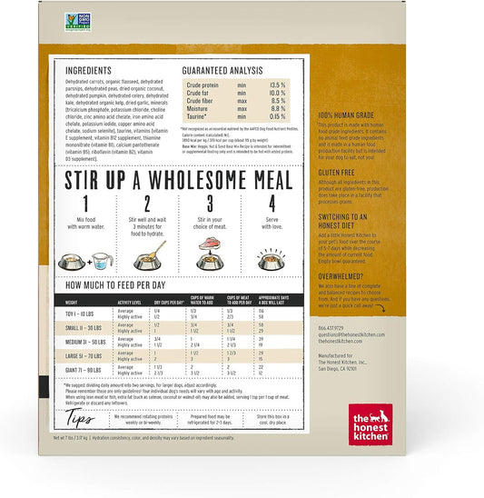 The Honest Kitchen Human Grade Dehydrated Grain Free Fruit & Veggie Base Mix Dog Food (Just Add Protein) - 7 Pound Box (Makes 12 Pounds)