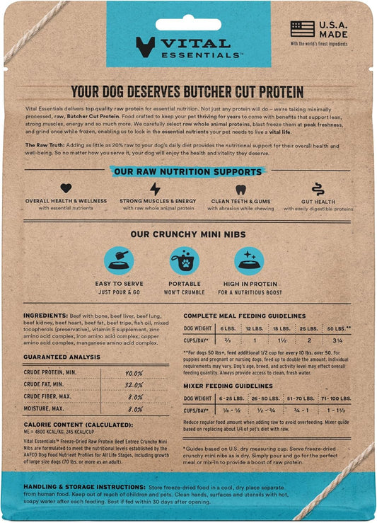 Vital Essentials Freeze-Dried Raw Beef Meal or Mixer Dog Food Crunchy Mini Nibs, 5.5 oz