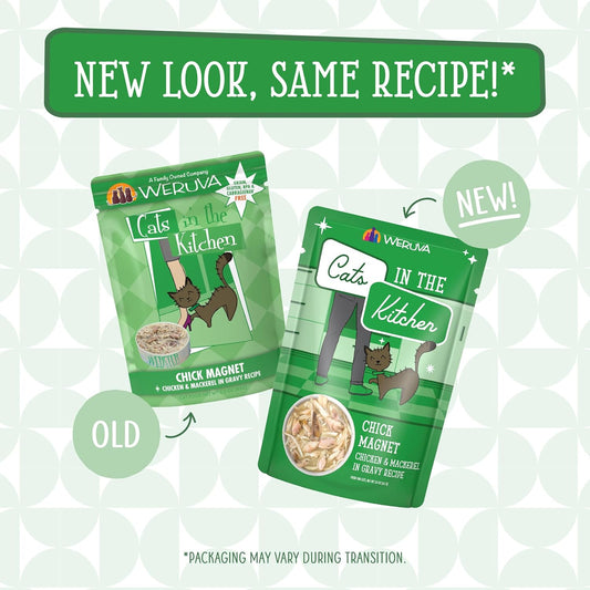 Weruva Cats in The Kitchen, Chick Magnet with Chicken & Mackerel in Gravy Cat Food, 3oz Pouch (Pack of 12)