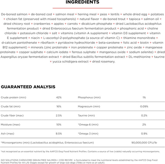 Go! Solutions Carnivore, Grain-Free, Protein Rich Dry Cat Food, Salmon and Cod Recipe, 3 lb Bag
