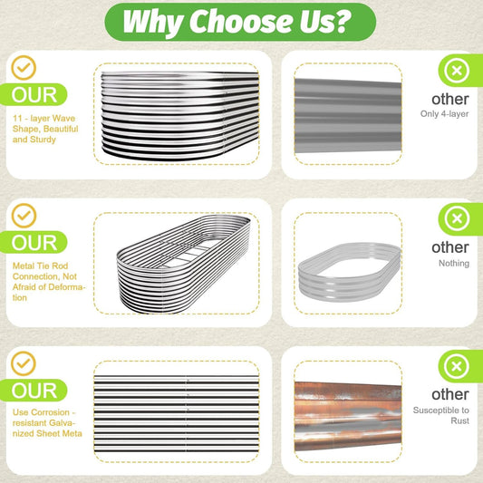 VINGLI Galvanized Raised Garden Beds Outdoor, 6x3x2 Ft, 8x4x2 Ft Lager Metal Planter Raised Beds for Planting Vegetables Flowers Herb (8 * 4 * 2(Oval))